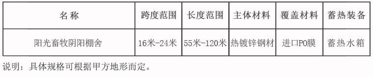 陽光畜牧陰陽棚舍配套設備包括:棚舍主體、骨架系統、外覆蓋系統、內保溫系統、內膜系統、放風系統等。
