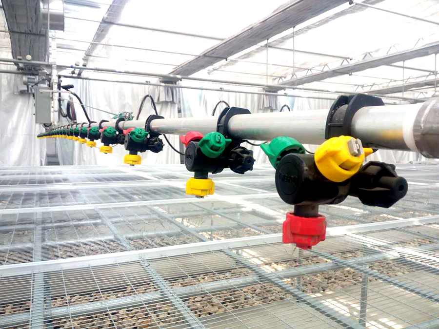 蔬菜集約化育苗裝備及技術(shù)采用配套苗床、軌道式噴灌系統(tǒng)、環(huán)流系統(tǒng)、營養(yǎng)基質(zhì)、補光系統(tǒng)等設施設備,并通過嚴格的溫濕光系統(tǒng)環(huán)境控制從而達到育苗生產(chǎn)的標準化、產(chǎn)業(yè)化生產(chǎn)。