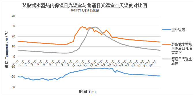 北方高寒地區日光溫室不加溫情況下很難實現越冬果類菜栽培,2018年12月份的連續低溫,呼市、包頭、鄂爾多斯等地的日光溫室都不同程度都受到凍害。我公司經過長期的研究與實踐,在2018年9月由內蒙古自治區設施園藝工程與技術中心主任崔世茂主要設計的裝配式水蓄熱內保溫日光溫室技術,在包頭市現代農業固陽示范基地建成,這是北方設施農業的重大設計。裝配式水蓄熱內保溫日光溫室在冬季的晴天,外界-30℃下,溫室內不加溫的情況下,早晨溫度可達到8℃以上,這項設施農業技術對促進高寒地區設施農業產業的發展和扶貧,具有重要的作用。